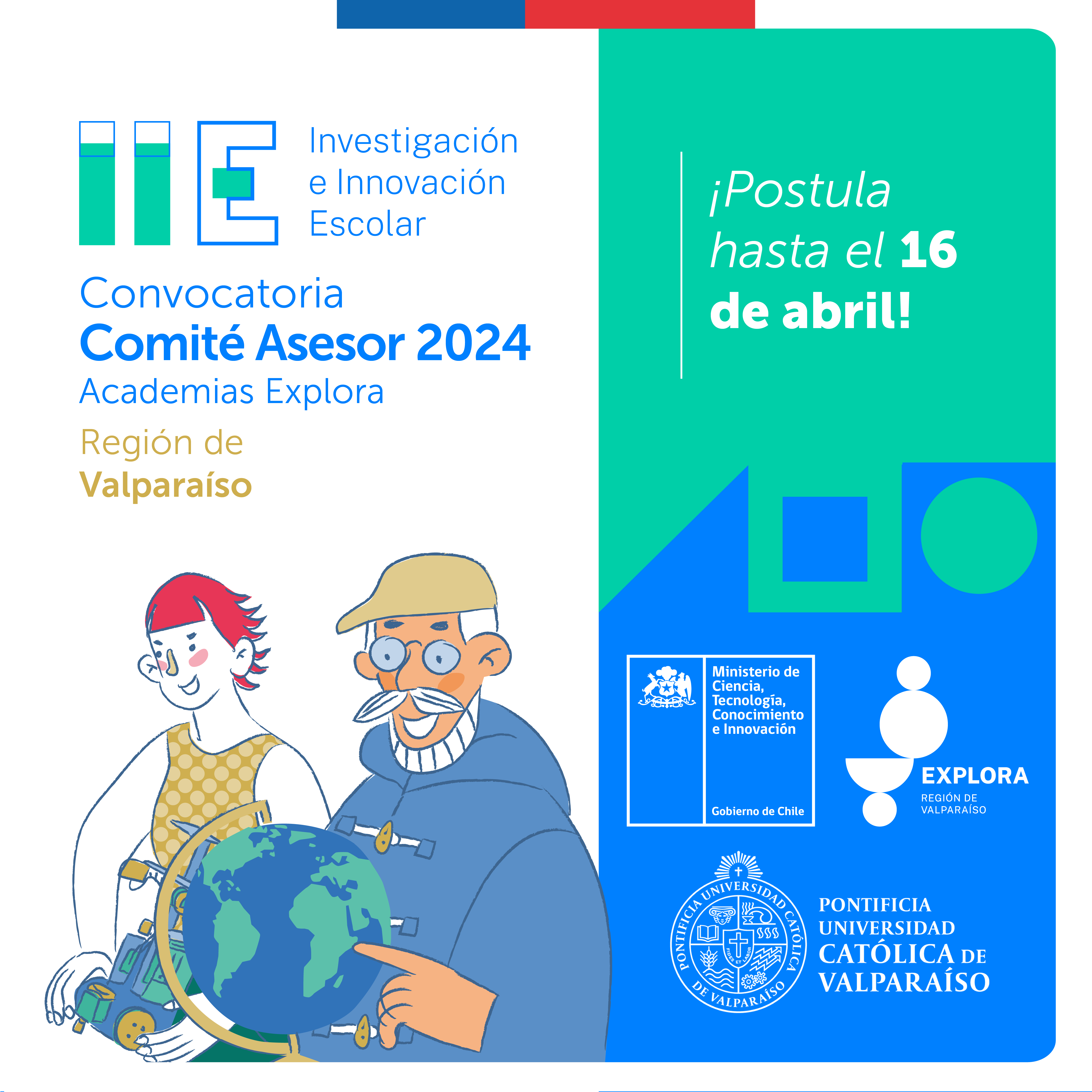 Hasta el martes 16 de abril, académicos/as, investigadores/as postdoctorales, estudiantes de postgrado y profesionales asociados a la UPLA, PUCV, UV y USM, las cuatro Universidades del Consejo de Rectores de Valparaíso, podrán incorporarse al Comité Asesor de las Academia Explora para entregar apoyo metodológico a los equipos de estudiantes que participan de ellas. Para más información de la convocatoria y formulario de inscripción, visita esta nota de Explora Valparaíso.