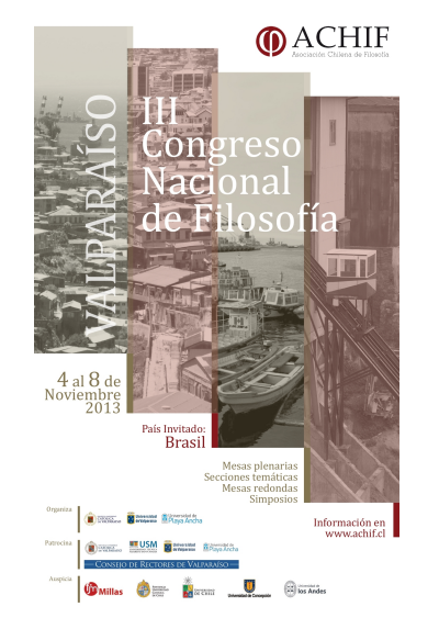 Este encuentro lo organiza la Asociación Chilena de Filosofía (ACHIF), a través de la Universidad de Playa Ancha en conjunto con la Pontificia Universidad Católica de Valparaíso y la Universidad de Valparaíso, y cuenta con el patrocinio del CRUCH Región de Valparaíso.