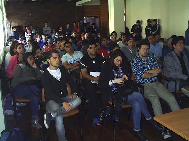 La sala Carlos Pantoja de la Facultad de Ciencias Sociales de la Universidad de Playa Ancha se hizo estrecha para albergar a estudiantes y docentes de diversas carreras, motivados por conocer al ex técnico de la selección chilena Sub-20 de fútbol, Mario Salas Saieg.