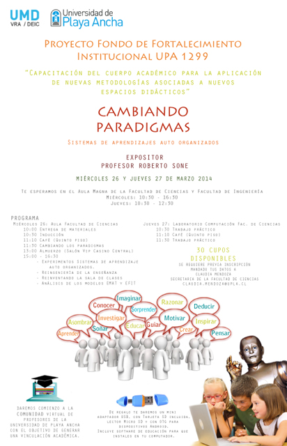 “Capacitación del Cuerpo Académico para la aplicación de nuevas metodologías asociadas a nuevos espacios didácticos”, se denomina el seminario que organiza la Unidad de Mejoramiento Docente (UMD) de nuestra casa de estudios, en el marco del Fondo de Fortalecimiento Institucional UPA 1299, en apoyo a la Facultad de Ciencias Naturales y Exactas.