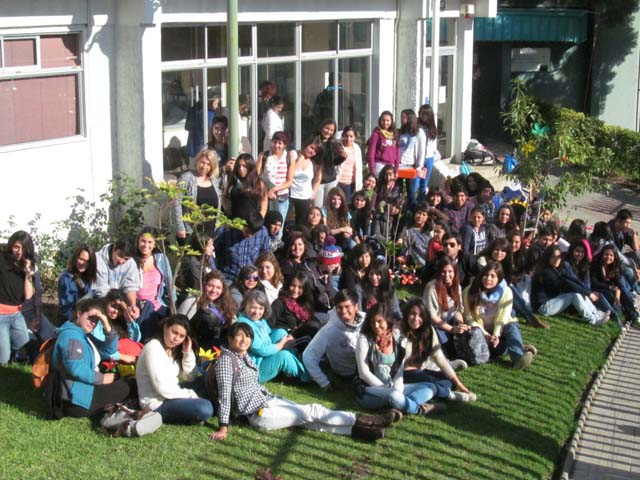 Al término del periodo de clases los estudiantes colocaron sus flores en el jardín que rodea el edificio Puntángeles.