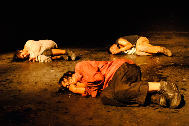 Es una propuesta que indaga en el inconsciente humano a través del lenguaje del cuerpo, prescindiendo de la palabra. Es un montaje lleno de contenidos e imágenes poéticas que la Compañía crea por medio de una emotiva coreografía, que intenta transmitir la soledad y el desamparo de cuatro almas en busca de un albergue que las proteja de la muerte.