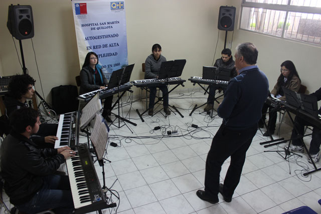 Opus Musicum UPLA_Hospital de Quillota1Más de 100 personas, entre usuarios, pacientes y funcionarios del Hospital San Martín de Quillota, fueron testigos privilegiados de la presentación del Ensamble de Sintetizadores “Opus Musicum” de la Universidad de Playa Ancha, dirigido por el profesor Edmundo Escalona Concha, que brindó una antología musical en el marco del programa “Arte que Sana”.