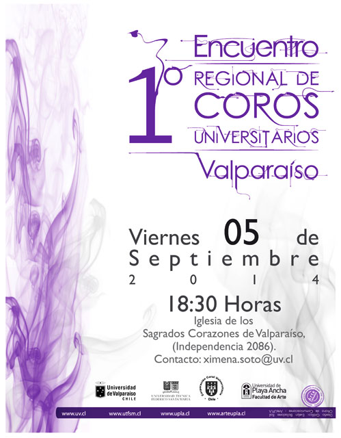 Para el 5 de septiembre está pronosticada la realización del 1er Encuentro Regional de Coros Universitarios que reunirá, en la Iglesia de los Sagrados Corazones de Valparaíso, a los coros de cámara de las universidades Playa Ancha, Federico Santa María y de Valparaíso.