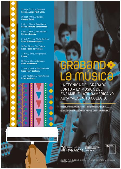 De esta manera se procura llevar la universidad a las aulas, integrando las disciplinas de música y grabado a través de jornadas creativas y de trabajo que incluyen el desarrollo de material didáctico y educativo para ambas expresiones artísticas que estarán a cargo del grabador y docente PUCV, Daniel Lagos, y del Ensamble Latinoamericano Abya Yala de la UPLA.