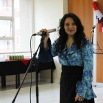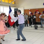 Demostrando cómo se baila la cueca, se presentó la estudiante de Traducción e Interpretación Inglés-Español Constanza Aghemio, quien obtuvo el segundo lugar en el Campeonato Interuniversitario de Cueca que organizó la Universidad de Viña del Mar. La joven dio cuenta de su destreza y carisma acompañada por el profesor Carlos Hernández.