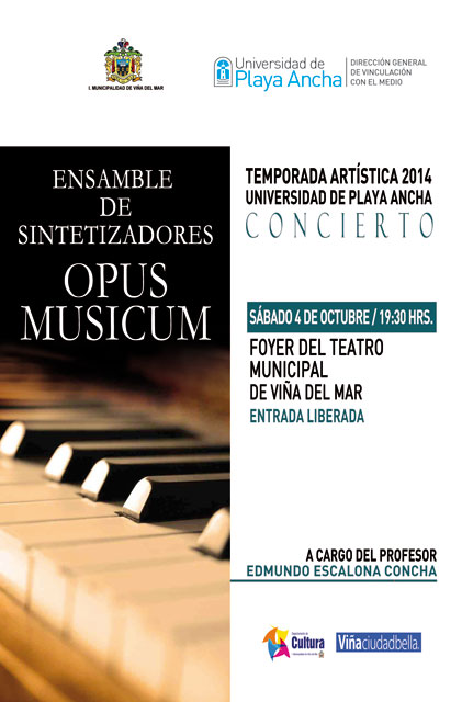 El sonido inconfundible del Ensamble de Sintetizadores “Opus Musicum”, a cargo del profesor Edmundo Escalona Concha, presentará lo mejor de su repertorio el sábado 4 de octubre, a las 19.30 horas, en el Foyer del Teatro Municipal de Viña del Mar.