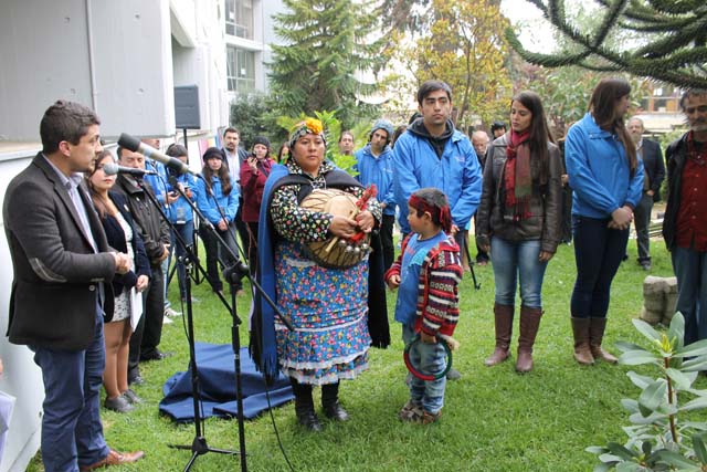 Todo el newen (fuerza) de los pueblos originarios se impregnó en los asistentes al descubrimiento de una placa recordatoria de las XXII Jornadas de Jóvenes Investigadores que se ubicó en el patio de la Casa Central de la Universidad de Playa Ancha.