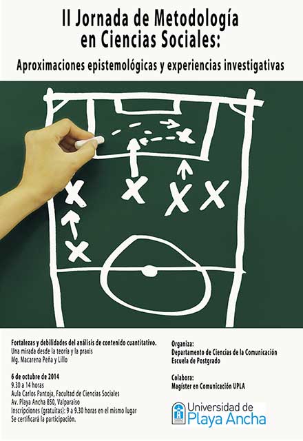 “Fortalezas y debilidades del análisis de contenido cuantitativo: una mirada desde la teoría y la praxis”, se denominó la ponencia de la magíster Macarena Peña y Lillo, periodista egresada de la Universidad de Chile y post graduada de la Universidad de Illinois, en el marco de las II Jornadas de Metodología en Ciencias Sociales organizada por el Departamento de Ciencias de la Comunicación en colaboración con el magíster en Comunicación UPLA.
