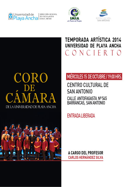 El Coro de Cámara de la Universidad de Playa Ancha llegará hasta San Antonio para protagonizar un concierto abierto a toda la comunidad local, donde presentará parte de su tradicional repertorio que incluye destacadas piezas de la música clásica y popular de todos los tiempos.