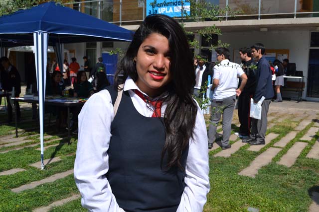 Marcela Golmo, alumna del Liceo Mixto de San Felipe: “Es muy bueno que la UPLA haga esto porque nos da la oportunidad de conocer las carreras. El campus es muy hermoso, tiene muchas áreas verdes y muy buenas salas de clases”.