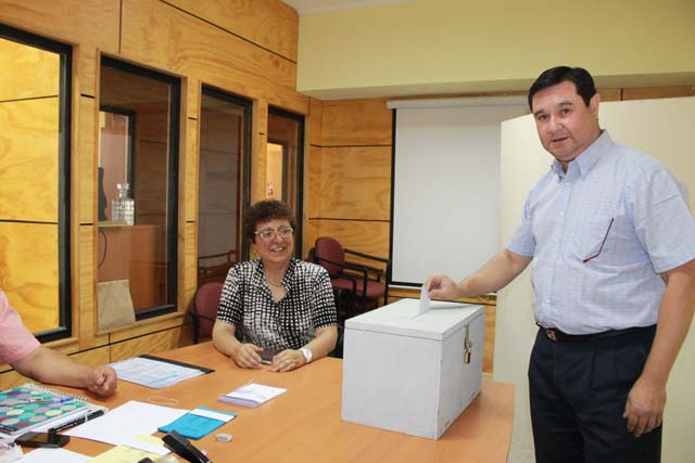 eleccion_decanos_luisalbertodiaz_1A las 17.10 horas comenzó el escrutinio en la Facultad de Ciencias de la Educación donde 30 académicos marcaron su preferencia por el actual decano Luis Alberto Díaz Arancibia, que obtuvo 27,5 votos ponderados, mientras que René Flores Castillo obtuvo 21,5.