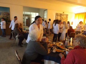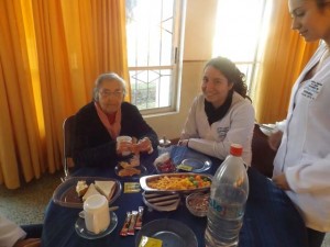 La delegación de la Facultad de Ciencias de la Salud UPLA preparó los alimentos que sirvió a la hora de la merienda, además planificaron y ejecutaron actividades musicales junto a dinámicas de animación en las que participó todo el equipo de Enfermería.
