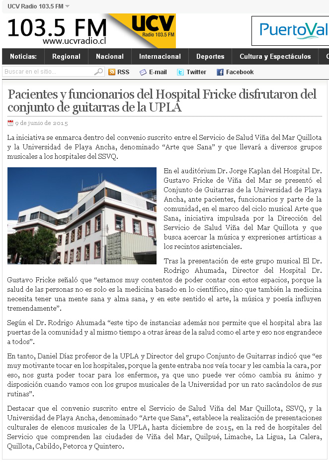 Fuente: UCV Radio, publicado el 9 de junio de 2015.