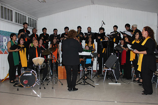 coroprofesores_conciertoviolencia_convenioplayancha1Sobre la iniciativa, Soledad Tuesta, directora del Coro de Profesores de Valparaíso, explicó que “es un proyecto que une dos cosas que usualmente no se habían unido, hacer un canto más comprometido, y aquí la gran maestra es la psicóloga Paula Elgueta. Nosotros ponemos la música, elegimos en conjunto las canciones y nos vamos complementando. Ha sido interesantísimo usar el arte para tratar desde otro ángulo el tema de la violencia”.