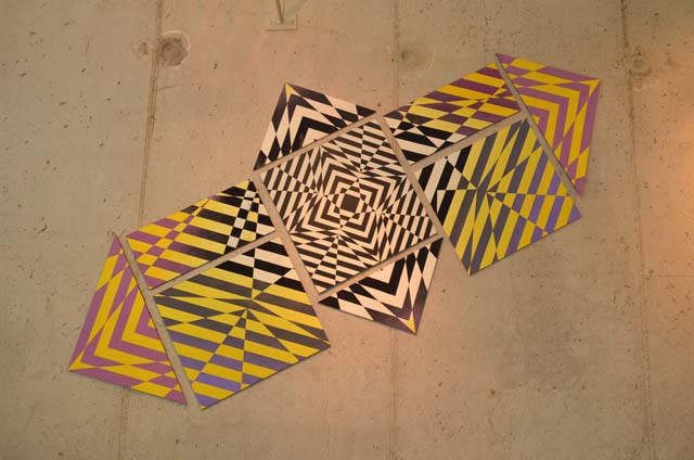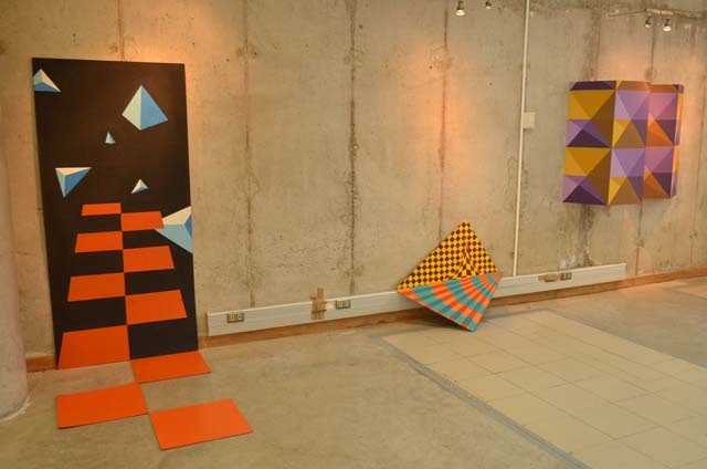Las obras (15) corresponden al trabajo de término de semestre del Taller Forma y Color I, que dictan los artistas visuales Edwin Rojas y Benjamín Donoso, en las que los estudiantes de arte ponen en práctica los conceptos básicos del plano, la forma y el color que han asimilado en este periodo de aprendizaje y que son la base de la pintura.