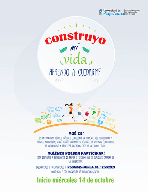 Generar un plan orientado a mejorar la calidad de vida de los estudiantes de la Universidad de Playa Ancha, conducente al fomento del autocuidado y hábitos saludables de acuerdo a los factores protectores de la salud, es el objetivo del Programa “Construyo mi vida, aprendo a cuidarme”.