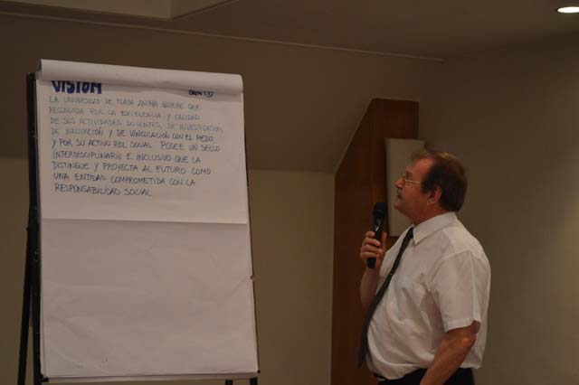 Para ello la Vicerrectoría de Desarrollo, liderada por María Francisca Briones Rosas, ha establecido una serie de acciones procurando la participación de toda la comunidad universitaria. En esa línea ejecutó un perfeccionamiento a los directivos sobre formación de Alta Dirección y una encuesta en línea para conocer la opinión de académicos, funcionarios y estudiantes sobre misión, visión y valores de la universidad.