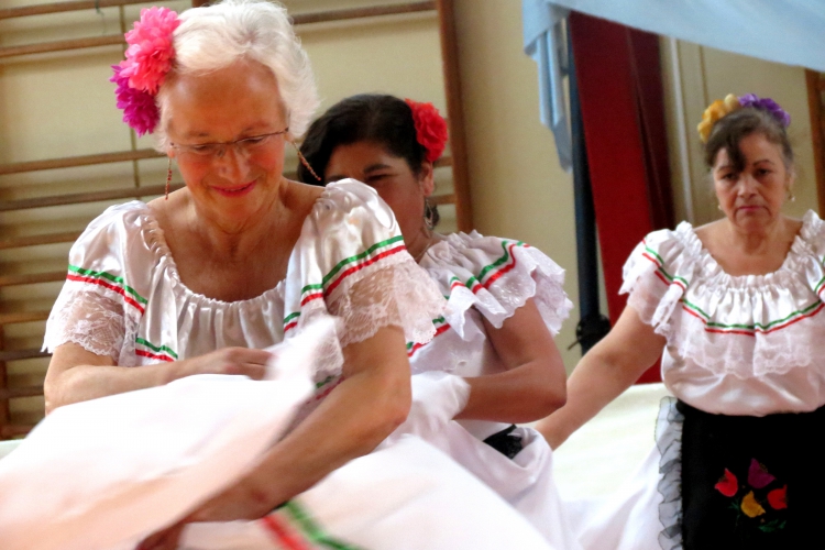 Amada Fuentealba, directora del Ballet Gimnástico de la UPLA (quien estuvo presentando como primicia la coreografía “Movimientos Quebrados y Tango”, extracto de la obra “Playa Ancha al Corazón”, que se estrenará el próximo 26 de noviembre a las 19.00 horas en el Teatro Municipal de Valparaíso), manifestó que le agrada el hecho de que en la actividad “haya participado desde un niño de primero básico hasta una señora de ochenta años, como la que vino de Casablanca. Además, hay que destacar que se ha comprobado que la danza ayuda a eliminar el bullying en la escuela e incluso hay colegios que están adoptando la música en los recreos, para que los niños bailen, con lo que se evitan los empujones, peleas y retos”.