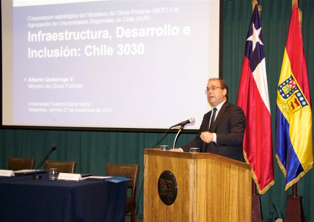El encuentro lo encabezó el ministro de Obras Públicas, Alberto Undurraga, junto a la Agrupación de Universidades Regionales (AUR), presidida por el rector de la Universidad de Playa Ancha, Patricio Sanhueza.