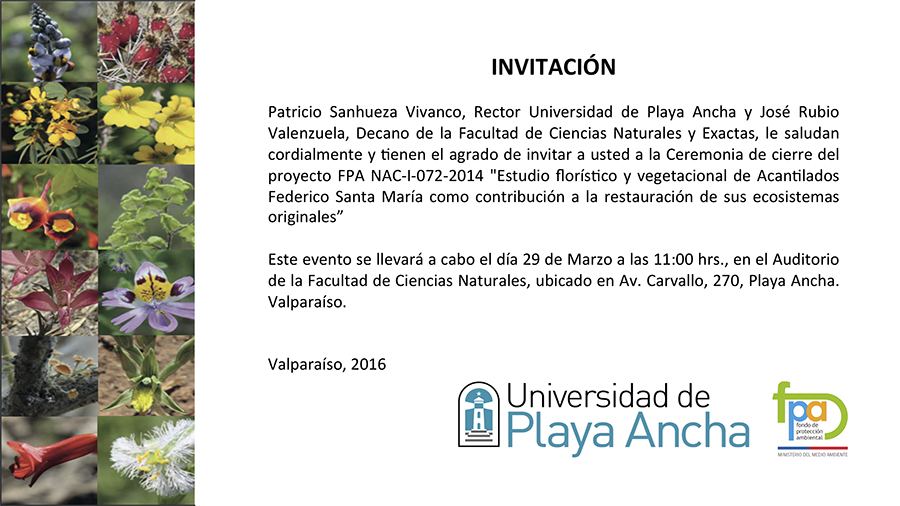 29 de marzo: Ceremonia de cierre del proyecto «Estudio florístico y vegetacional de Acantilados Santa María»