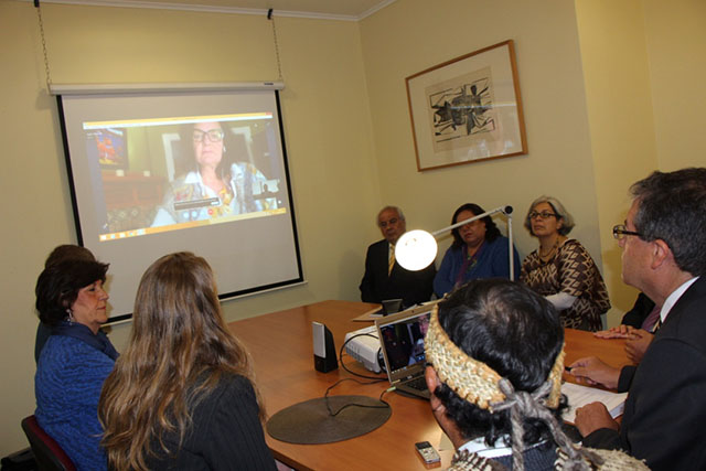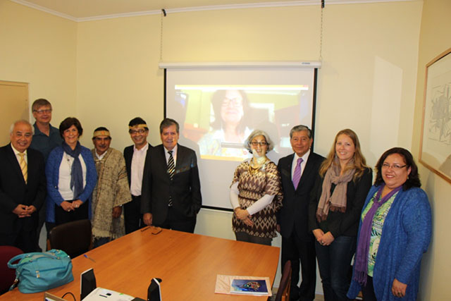 Previo a la firma del convenio, el rector de la universidad sostuvo una conversación vía Skipe con la académica de la Universidad de la Isla del Príncipe Eduardo, Canadá, Dra. Kate Tilleczek, colíder del Proyecto WEKIMÜN, con quien compartió la satisfacción de este trabajo conjunto.