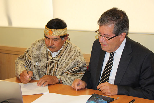 Con el objetivo de desarrollar actividades académicas, científicas y técnicas en conjunto, desde un enfoque interdisciplinario e intercultural, el rector de la Universidad de PLaya Ancha, Patricio Sanhueza, y el cacique y secretario general del consejo de Caciques Williche de Chiloé, Jorge Guenqueman Nain, suscribieron un convenio de cooperación amplio.