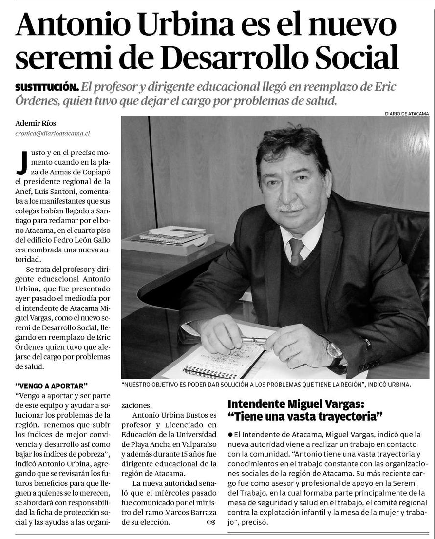Fuente: El Diario de Atacama, página 6, publicado el 5 de abril de 2016.