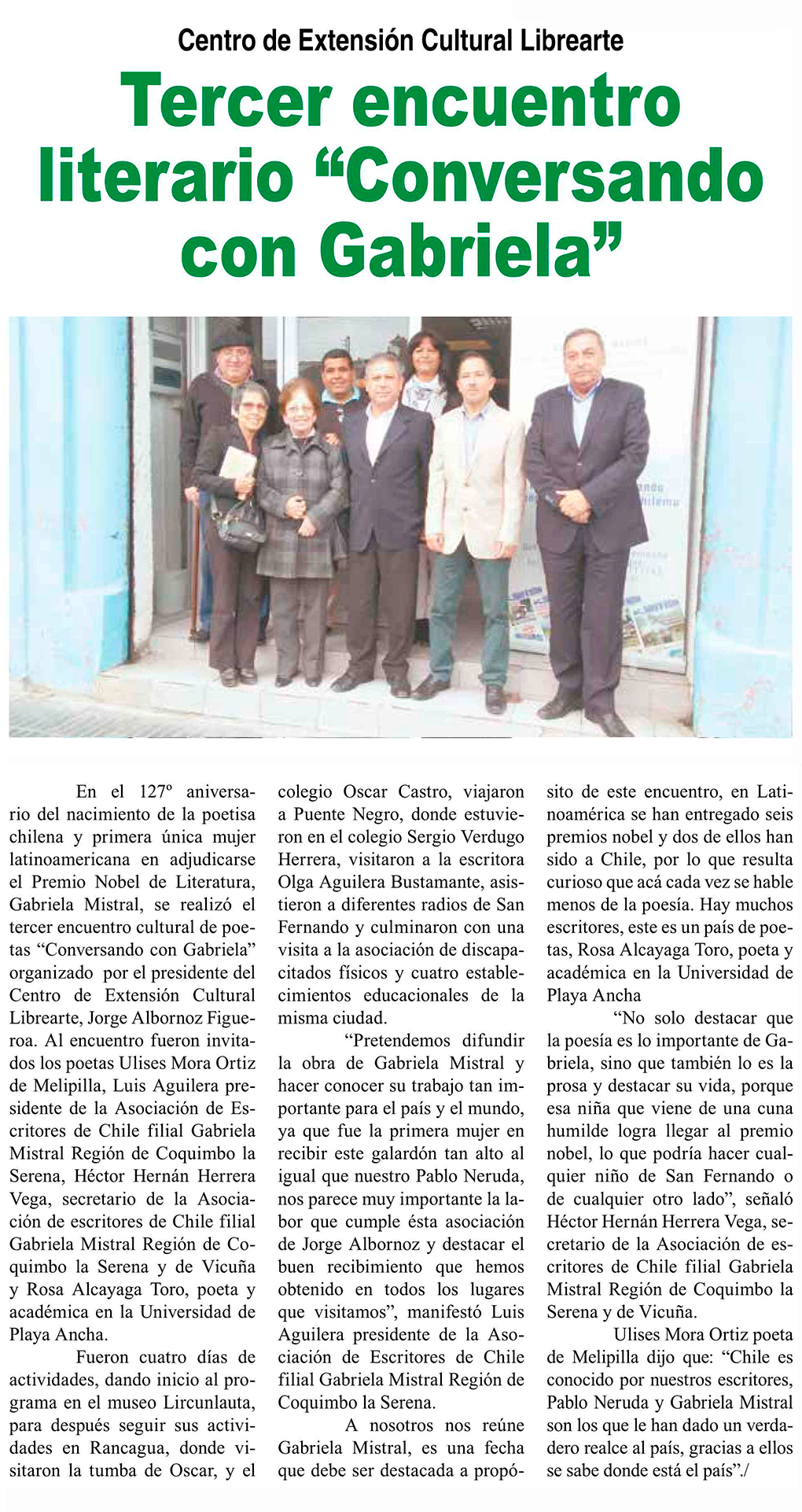 Fuente: Diario VI Región, página 12, publicado el 12 de abril de 2016.