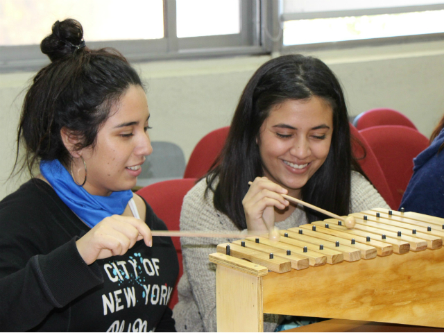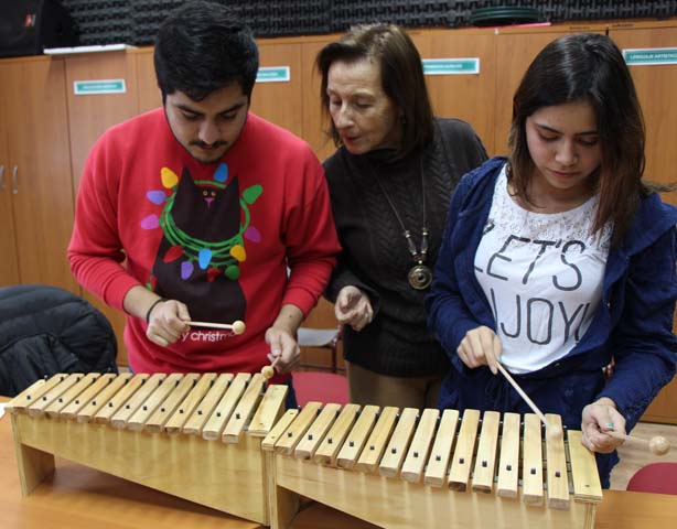 Con nuevos instrumentos musicales contarán las estudiantes de Educación Parvularia de la Universidad de Playa Ancha, que cursan el ramo de música en el Laboratorio Multipropósito de la carrera.