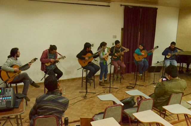 La presentación denominada “Viernes de charango” reunió en el auditorio de Arte a siete jóvenes músicos, cuyo repertorio se basó en interpretaciones de temas de destacados compositores chilenos, argentinos y bolivianos, y creaciones propias hechas especialmente para este instrumento de cuerdas de origen andino.