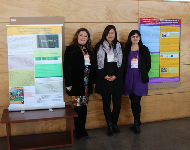 Ximena Espinoza Ortíz, académica: “Webquests: una estrategia de innovación didáctica en el proceso de enseñanza y aprendizaje de la fotosíntesis”. “Este póster es producto del trabajo desarrollado en una de las asignaturas del magíster en enseñanza de las ciencias, donde tuvimos que diseñar webquests, temáticas, para producir un aprendizaje significativo en algún área, nosotros elegimos la biología, específicamente la fotosíntesis y está orientado a estudiantes de primer año de enseñanza media y basado en los planes y programas del MINEDUC para este nivel”.