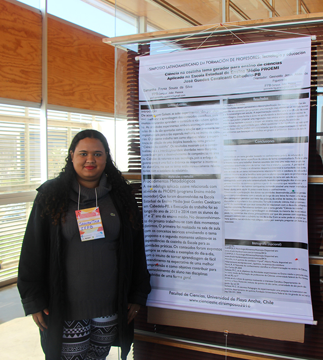 Samantha Souza da Silva, Universidad Federal de Paraíba, Brasil. “Mi trabajo trata de un proyecto que trata la práctica de las ciencias, química, biología y física en la cocina. Es decir, aplicar estas ciencias y los conocimientos científicos en las actividades prácticas y rutinarias como, por ejemplo, el cocinar y preparar alimentos”.