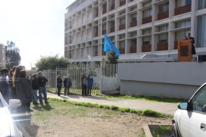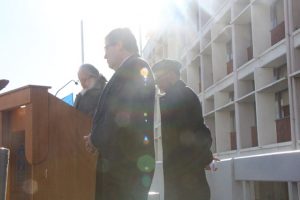Fue así como en el frontis de la Casa Central de la Universidad de Playa Ancha se instaló un improvisado escenario en el cual el rector Patricio Sanhueza Vivanco junto a los académicos de la Facultad de Humanidades, Daniel Lagos Altamirano y Oscar Quiroz Mejías, expresaron su sentir frente al cortejo que se detuvo en la UPLA previo a su partida al cementerio Nº 3.