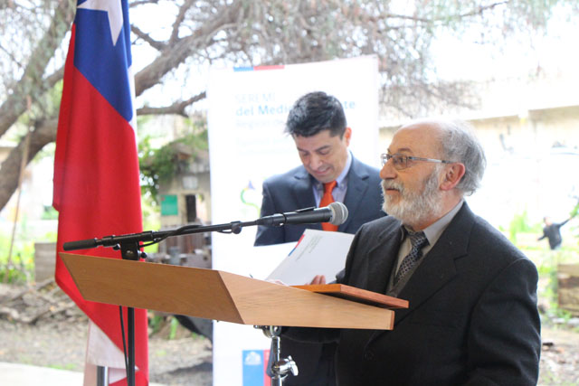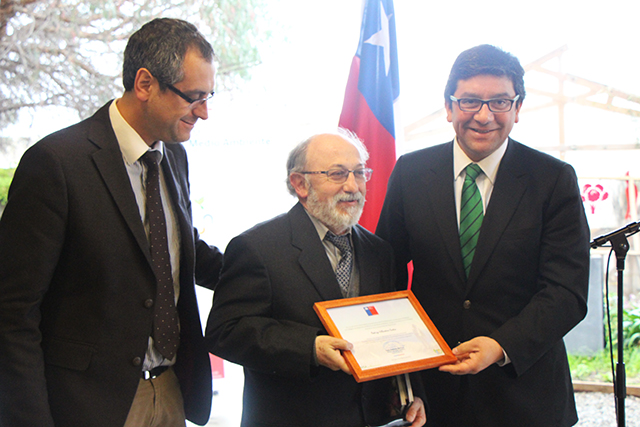 El ministro de Medio Ambiente, Pablo Badenier Martínez; junto al gobernador provincial de Valparaíso, Jorge Dip Calderón, le entregaron un diploma en el marco del lanzamiento del XX Concurso del Fondo de Protección Ambiental (FPA) que se realizó en el Parque Cultural de Valparaíso.