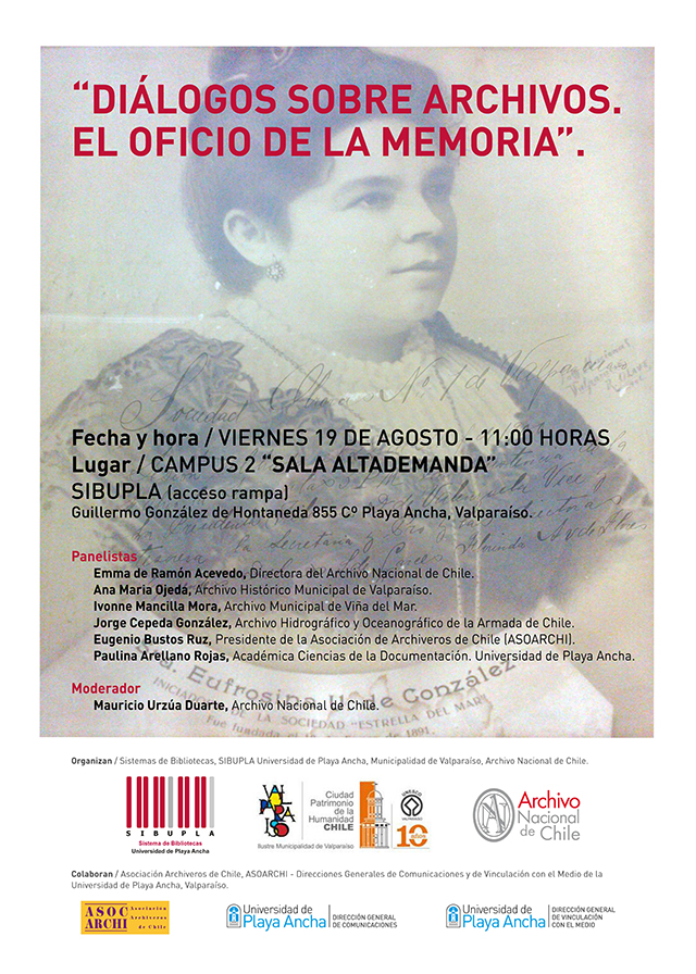 “Diálogo sobre Archivos. El Oficio de la Memoria”, se denomina la actividad que se realizará el 19 de agosto, a las 11 horas, en la Sala de Alta Demanda de la biblioteca central de la Universidad de Playa Ancha.