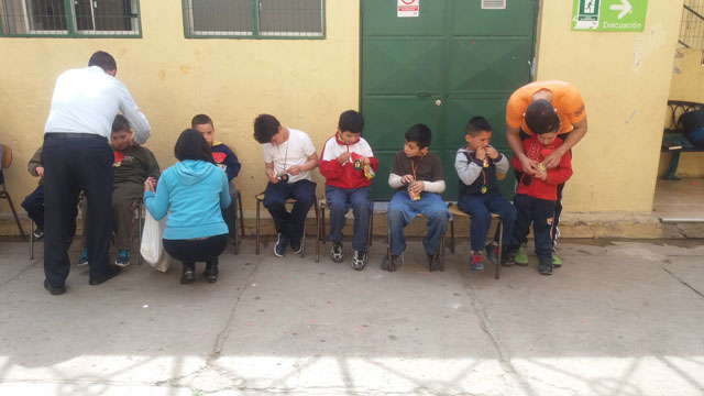 Fruto de lo aprendido en el semestre, los jóvenes desarrollaron actividades recreativas con niños entre 6 y 9 años, los que fueron premiados por su participación con una medalla y una bolsa de golosinas.