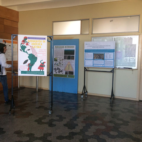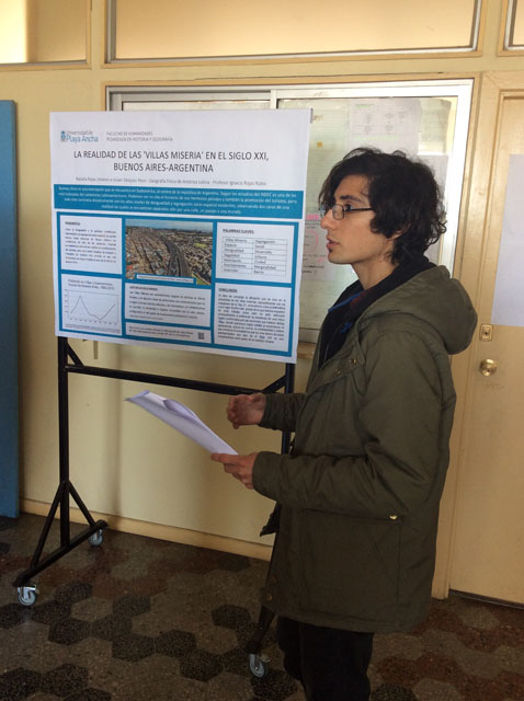 El hall de la Facultad de Humanidades se transformó en un espacio de exposición de póster científicos, en el cual los estudiantes de tercer año de la carrera de Pedagogía en Historia y Geografía dieron a conocer las investigaciones realizadas en torno a la “Geografía de América Latina”.