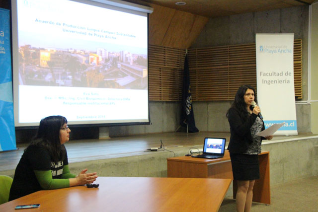 Marisol Belmonte, encargada de investigación de la Facultad de Ingeniería: “Es de gran relevancia que la institución forme parte de este Acuerdo de Producción Limpia, ya que son muy pocas las universidades que están por abordar los APL. Hoy nos estamos enfocando en la parte institucional lo que es bastante importante porque la universidad como entidad desarrolla factores claves que aportan al desarrollo sustentable no solo en la formación de profesionales sino que también en la parte integral del profesional que estamos formando y eso es bastante relevante hoy en día”.