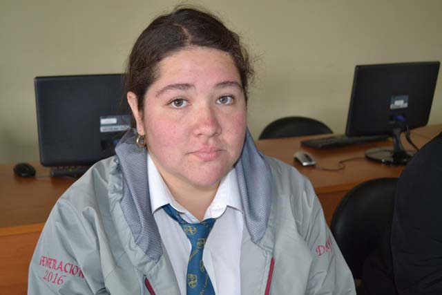 Daiana de la Cruz, alumna del Liceo Técnico Felipe Cortés de la localidad de El Melón: “Yo quiero estudiar la carrera de Ingeniería en Informática, porque mi hermano me ha incentivado en esta área. Me gustó mucho la Universidad y espero poder quedar aquí”.