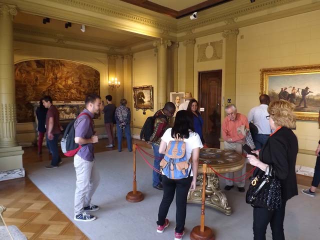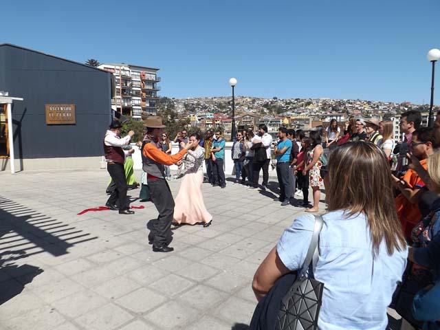 Los estudiantes UPLA junto al director de Relaciones Internacionales, Dr. José Manuel Olivares, accedieron al museo por la escalinata del ascensor El Peral, donde fueron recibidos por el un grupo folclórico de la UV. y apreciaron las obras pictóricas del museo y sus salones.