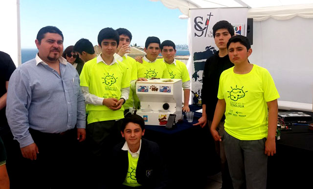 Alimentar las mascotas (perros), especialmente durante el periodo de vacaciones fue la principal motivación de ocho estudiantes de octavo básico del Colegio Salesiano de Valparaíso, que liderados por el docente de Pedagogía en Educación Tecnológica de la UPLA, Andrés Alarcón Biggio, idearon e implementaron un dispensador controlable y programable a través de un celular con conexión a internet.