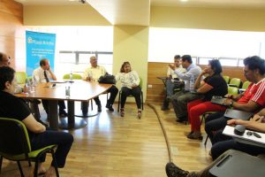 En el conversatorio participaron la Dra. Begoña Torres Gallardo de España, Dr. José Puig Espinosa de Cuba, Dra.Maura Salabarria Roig de Cuba, Máster Pablo del Val Martín de Ecuador y Nelson Marques Junior de Brasil, quienes fueron invitados a la Universidad de Playa Ancha en el marco del 1° Congreso Iberoamericano de Observatorios del Deporte: Políticas Públicas, Investigación y Ciudadanías’, que se realizó entre el 16 y 18 de noviembre en Santiago.