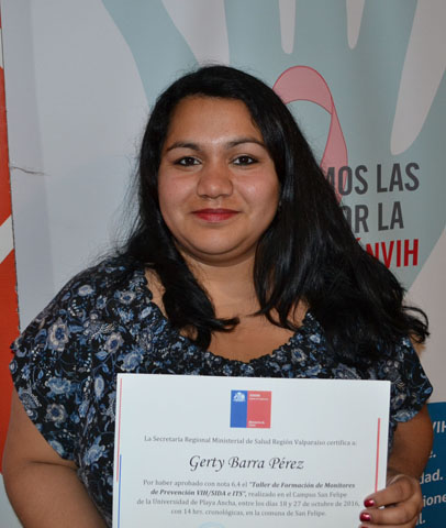 “Estoy muy contenta de haber aprobado este curso, porque para nosotros como futuros profesores y encargados de la formación de jóvenes, incentivar la prevención en esta materia es muy importante. Sabemos que la principal población afectada por el virus del SIDA está entre los 18 y 25 años. Por ello, pienso que la educación y la prevención son clave para bajar las tasas que en nuestro país están muy altas”.
