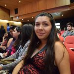 Alicia Castro Lara, estudiante de Bibliotecología (promoción 2012): «Estoy muy emocionada y muy orgullosa. Siempre me ha gustado dar todo en mi carrera, que me apasiona. Y feliz, feliz, de que mi universidad reconozca todos mis logros, mis metas. Muchas gracias. ¿Un mensaje a mis compañeros? Que tengan siempre perseverancia y ojalá le tomen cariño a la carrera, como yo lo tuve, porque con eso pueden llegar muy lejos».