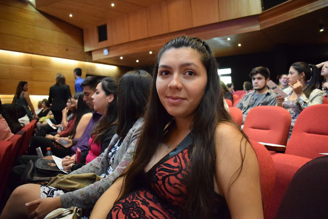 Alicia Castro Lara, estudiante de Bibliotecología (promoción 2012): «Estoy muy emocionada y muy orgullosa. Siempre me ha gustado dar todo en mi carrera, que me apasiona. Y feliz, feliz, de que mi universidad reconozca todos mis logros, mis metas. Muchas gracias. ¿Un mensaje a mis compañeros? Que tengan siempre perseverancia y ojalá le tomen cariño a la carrera, como yo lo tuve, porque con eso pueden llegar muy lejos».