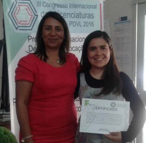 Giovanna Silva Santis recibió el primer lugar en la categoría Comunicación Oral, en el III Congreso Internacional “Despertando Vocaciones para las licenciaturas”, efectuado en el Instituto Federal de Pernambuco, Brasil.