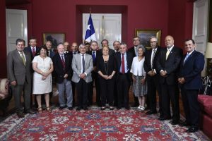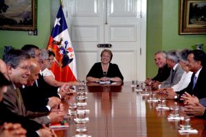 En el comedor presidencial del Palacio de La Moneda, la Presidenta de la República, Michelle Bachelet Jeria, recibió a los 18 rectores de las universidades estatales chilenas, incluyendo a Patricio Sanhueza en representación de la Universidad de Playa Ancha. También estuvieron presentes la ministra de Educación, Adriana Delpiano, y el ministro secretario general de la Presidencia, Nicolás Eyzaguirre.