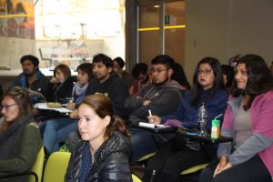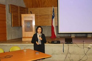 La Dra. Sánchez explicó que en esta oportunidad vino a compartir un doble rol. Por una parte, como presidenta de la Sociedad Chilena de Ciencias Geográficas, se refirió a la sociedad y sus funciones, misión, las actividades de divulgación, publicaciones , en suma, las diversas actividades que realizan en el mundo de las ciencias geográficas del país.