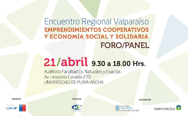Este 21 y 22 de abril se desarrollará el Encuentro Regional Valparaíso: Emprendimientos Cooperativos y Economía Social y Solidaria. Instancia que permitirá a la Región de Valparaíso participar en el Foro/Panel: Contribuciones de la Economía Social y Solidaria a un Buen Vivir, así como de la exposición de distintos emprendimientos cooperativos y la Feria del Buen Vivir.